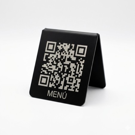 Hablador Mesa QR para Menú Digital - Diseño "V" Negro Mate/Brilloso Elegante